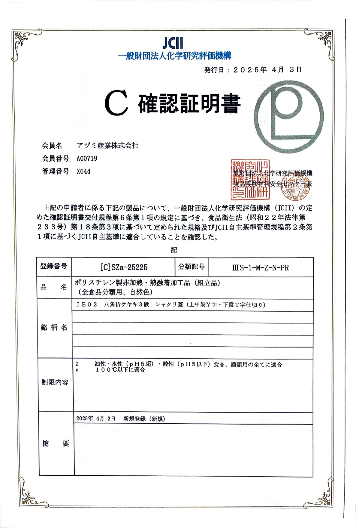 A確認証明書:基材(ベースポリマー)がポジティブリストに収載されているかを確認